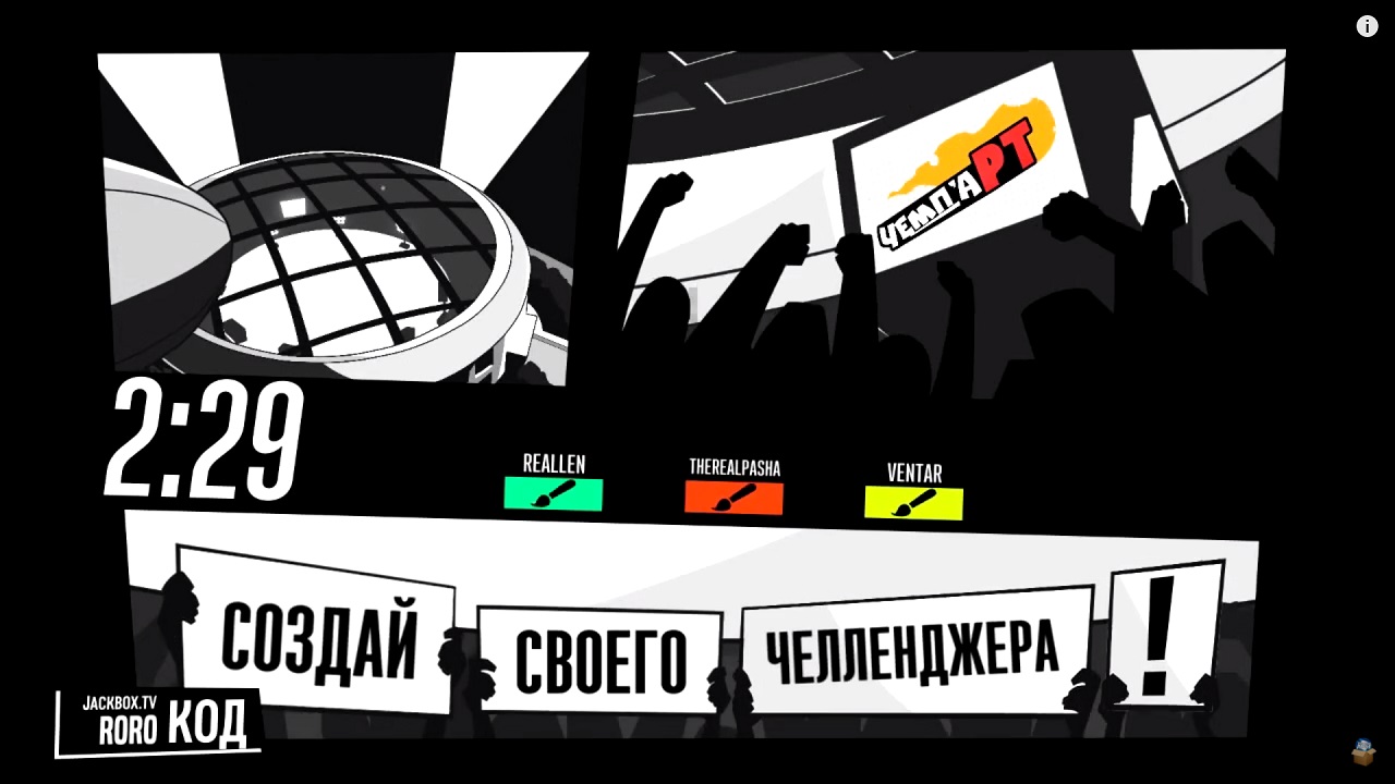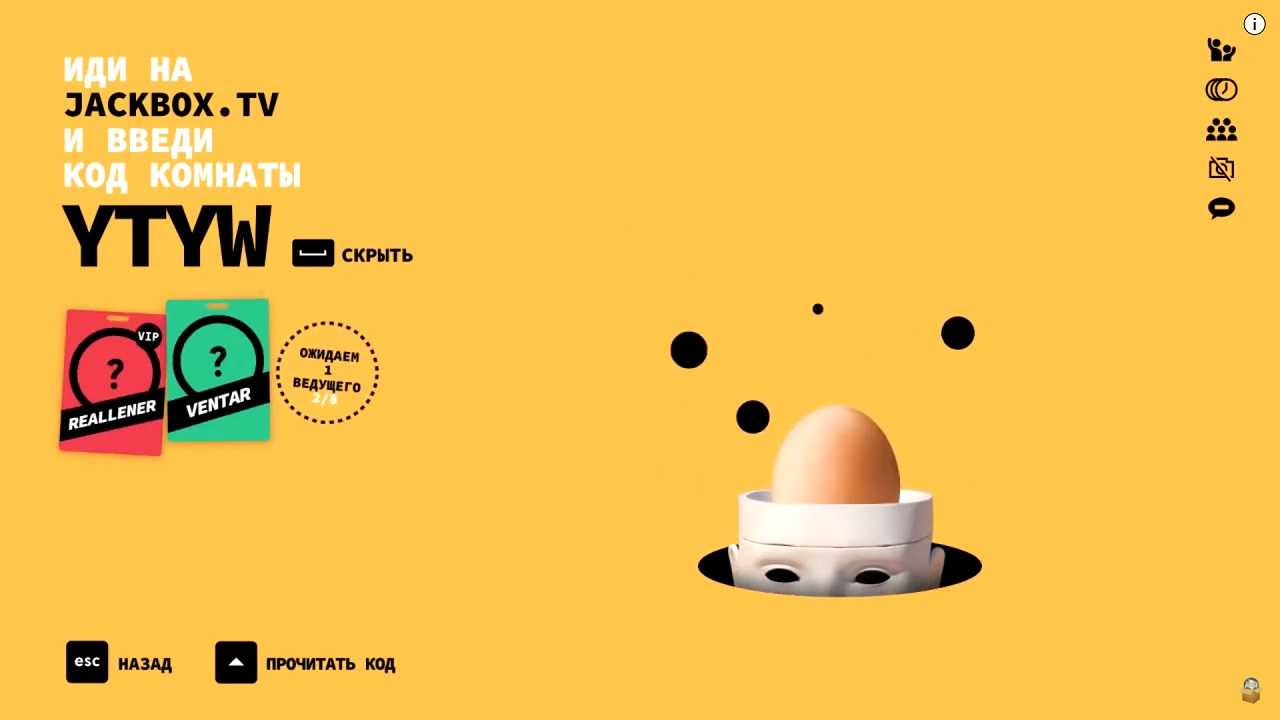 Зайти на сайт JackBox Tv - ввести ник и код приглашения