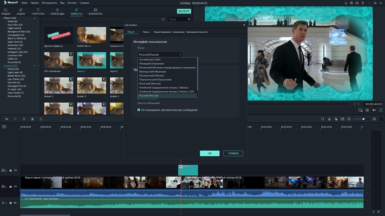 Для запуска Filmora Instant Cutter на выбранном языке (а не английском), запускать его следует
