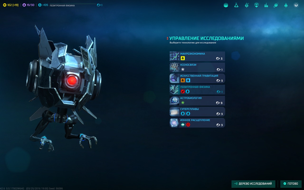 Огромнейшим плюсом игры можно назвать полную локализацию, даже описание каждой фракции переведено на русский. Имеется ввиду, что во время выбора игровой расы, диктор прочитает вам все особенности каждого представителя. Всего вам представлено на выбор десяток разных фракций, каждая из которых обладает уникальными бонусами и совершенно непохожим на других подходом к ведению дел. Следует выбирать их с умом, так как ваш стиль игры будет напрямую зависеть от того, какую фракцию вы выбрали. Если вы хотите играть за ученых, то лезть с первых ходов в войну не стоит, они будут не довольны вашим решением. То же вас ждет и в обратном случае, милитаристы хотят войны, а не мирного развития.